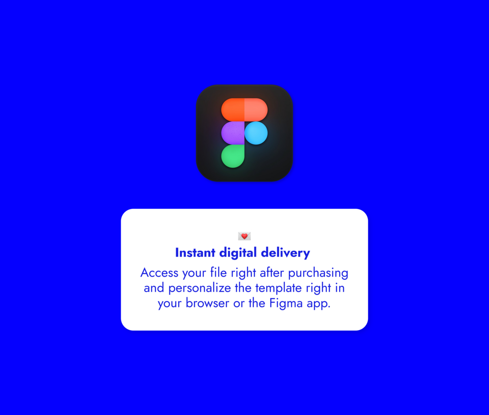 No bottlenecks: Instant, 100% digital Figma file delivery (the industry standard for digital design, available free).